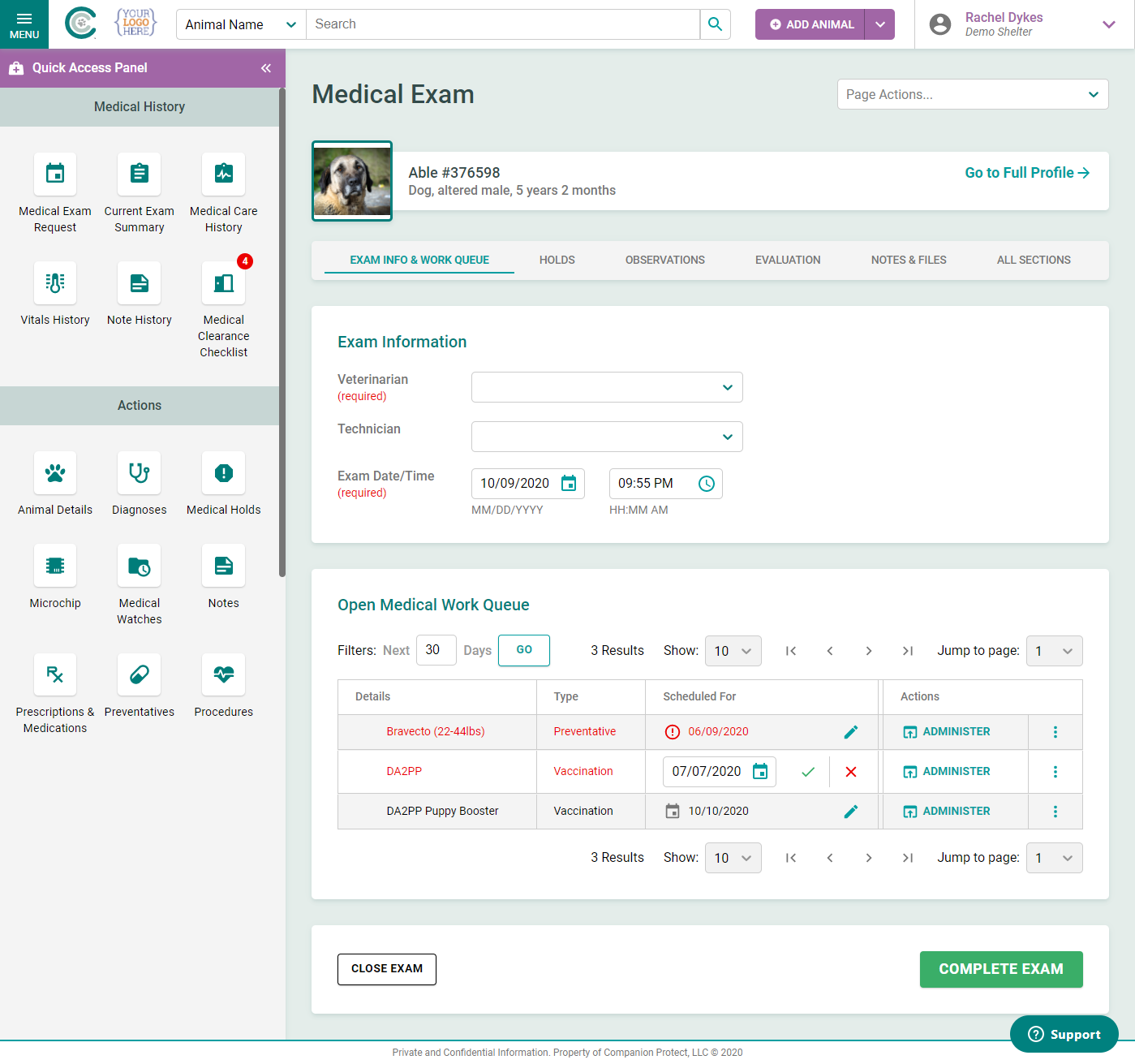 The project: Companion Connect’s animal shelter management software solution needed a brand new medical exam interface, all on one page.